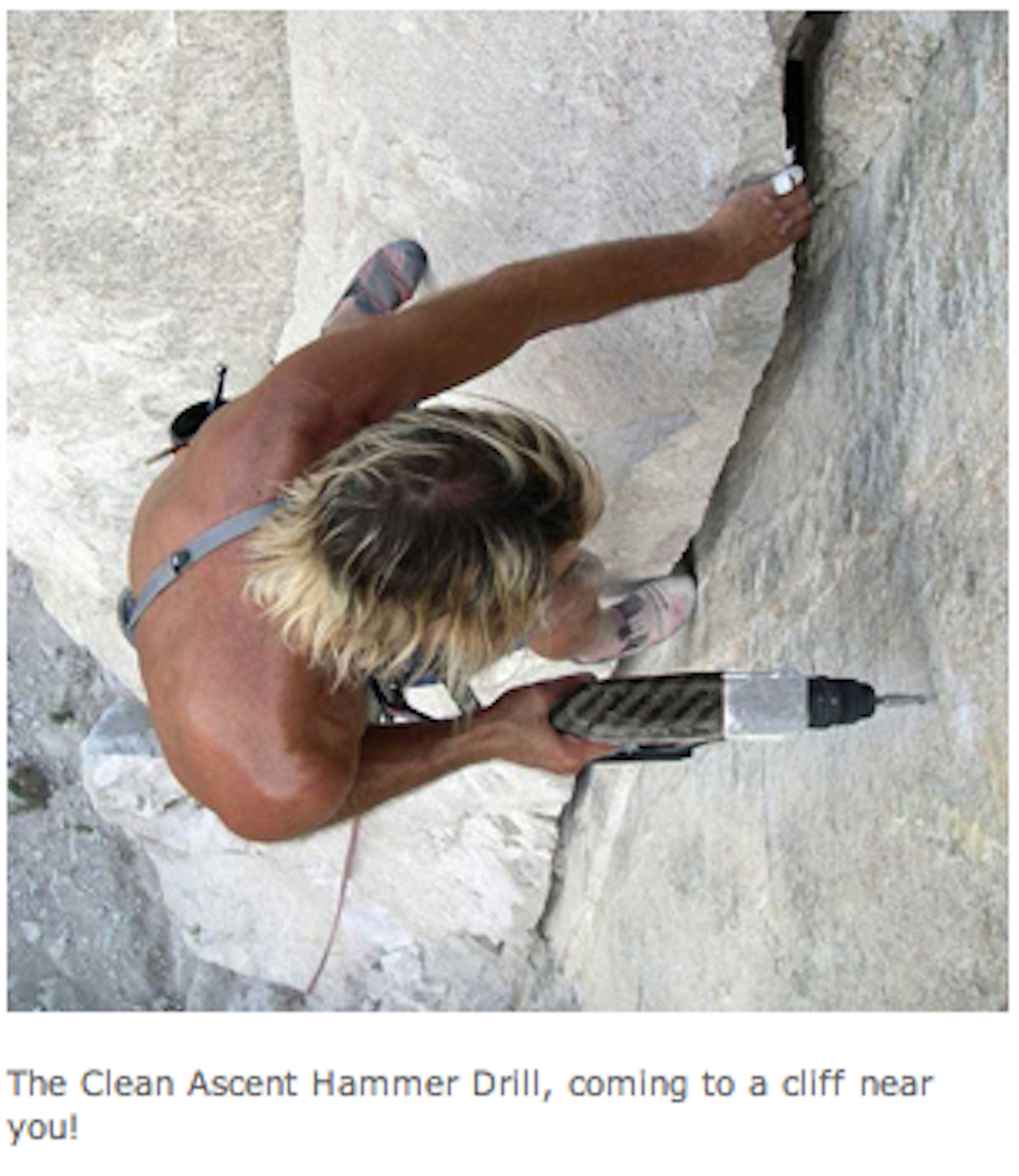 Alpinist tar 1. april på alvor. I sin spalte for nytt utstyr har de i dag en artikkel om den nye og superlette Alpinist Clean Ascent-drillen, som kan bli din uvurderlige følgesvenn i racket når du går tom for kamkiler i riktig størrelse, på vei opp perfekte jammeriss. Anbefalt både på støtende førstebestigninger og repetisjon av klassikerne:)