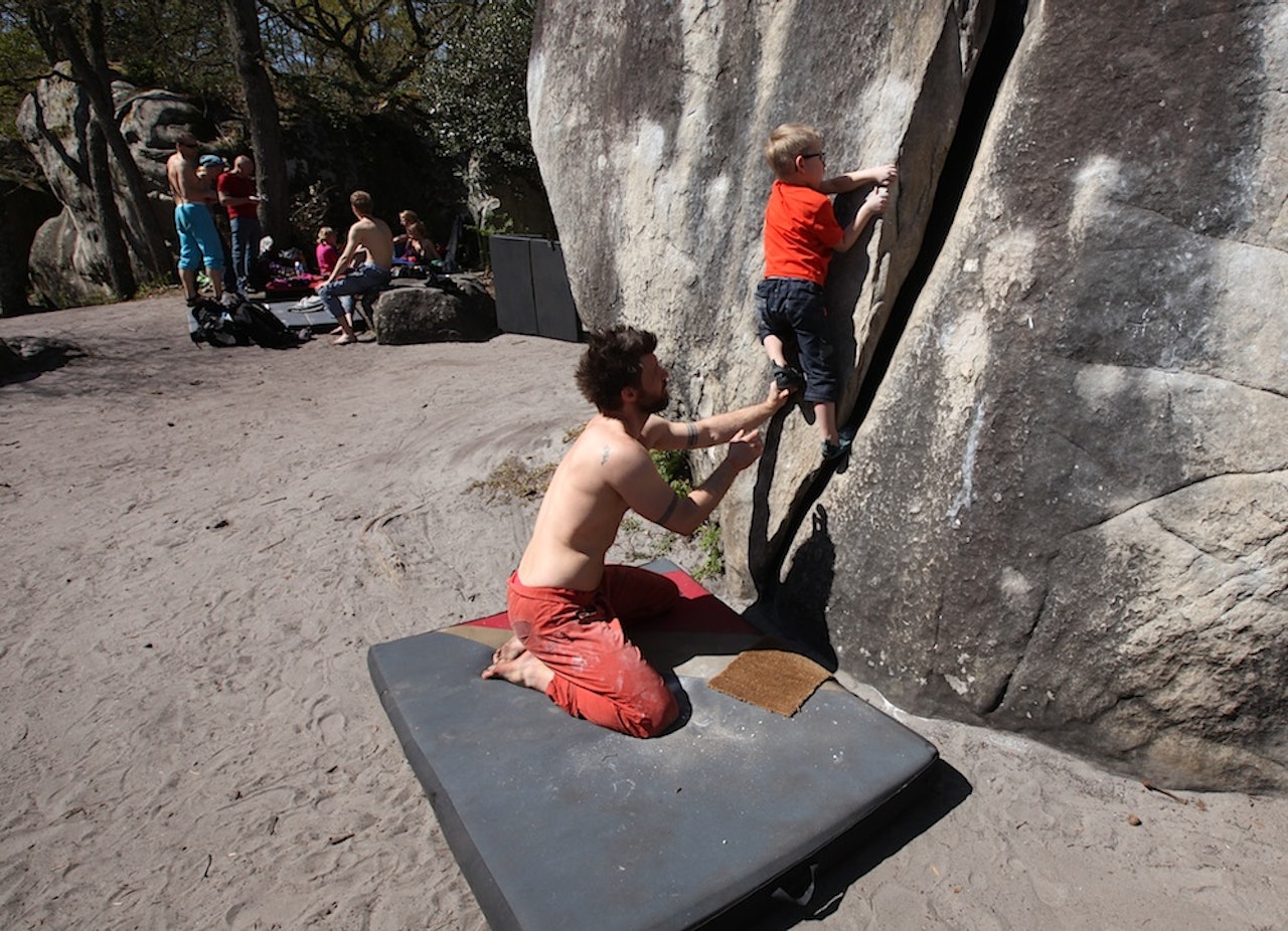 For en buldrer som får barn, stopper altså ikke klatrelivet. I Fontainebleau er det bare å ta med bøtte, spade og litt kakao, og du får en skikkelig økt mens puddingen ligger og griser seg til noen meter unna. Når hun blir litt større, kan også hun ta tak i klatringen, for her finnes også drøssevis av barneproblemer.