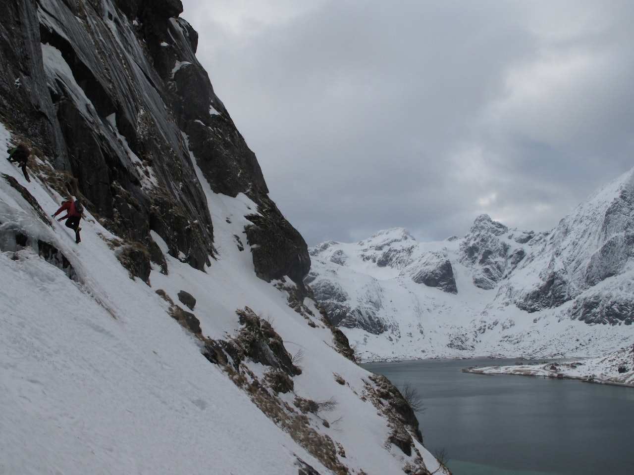 Ut mot havet: Colin Haley begynner på klatringen på Eggum. Alle foto: Mårten Blixt
