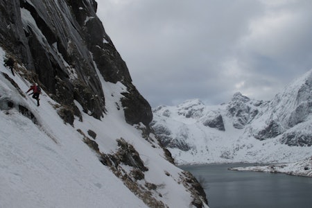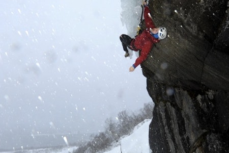 – Jeg gikk teknisk først, og slo en pecker, en lost arrow og to knivblader. Så firte jeg ned og ledet taulengden. Det var en seriøs lengde, fordi man må klatre ganske langt usikret ut fra standplass, over en kant. Men jeg var ikke redd – listeklatring er min stil.