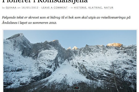 Her kan du lese om klatreturrapporter fra Romsdalen, boltedebatter blant annet på Klauva og andre klatrehistorier fra Romsdalen.