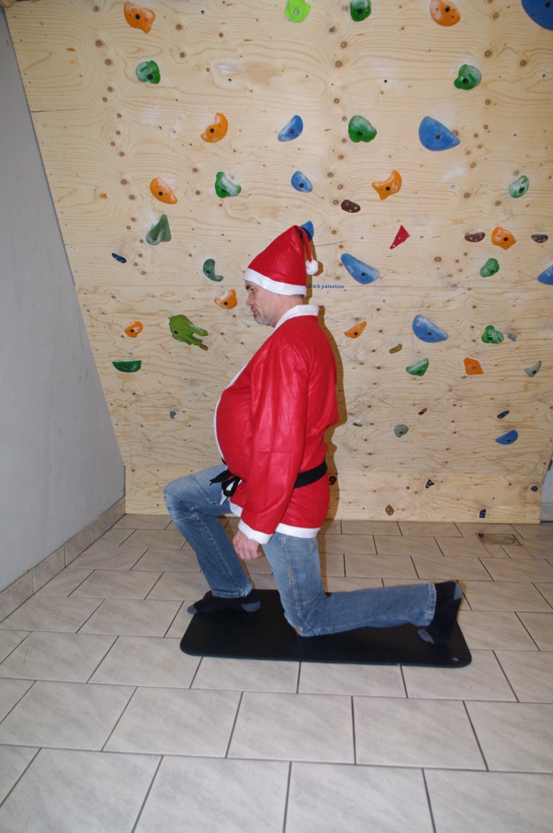 Stå rett opp og ned, ta et langt skritt frem. Bøy knærne til kneet på «bakbeinet» treffer bakken. Skrittet frem skal helst være slik at kneet treffer rett bak hælen.