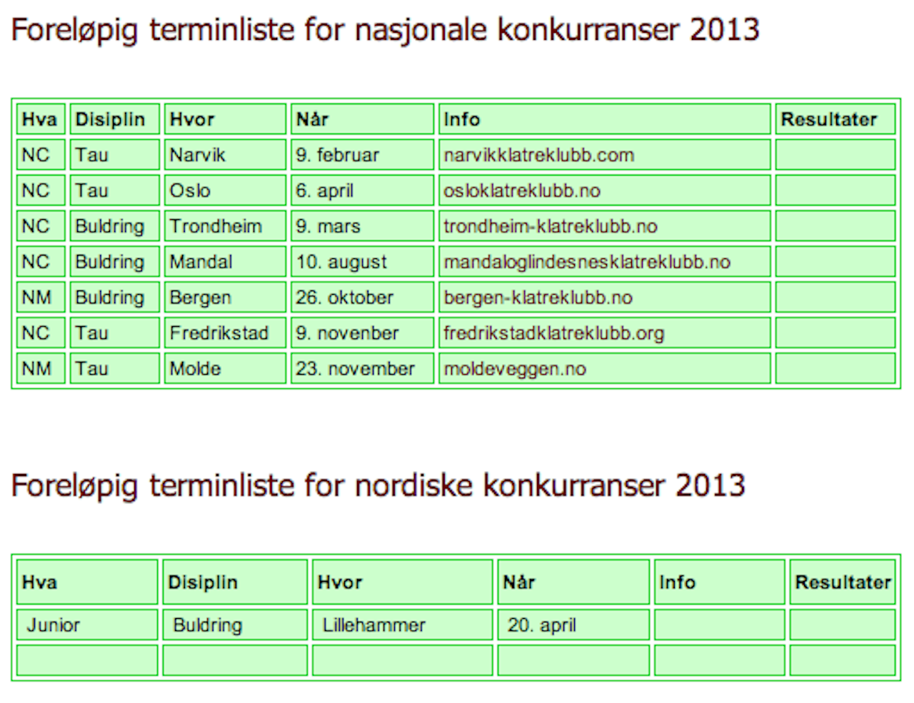 Dette er konkurranselista for 2013: