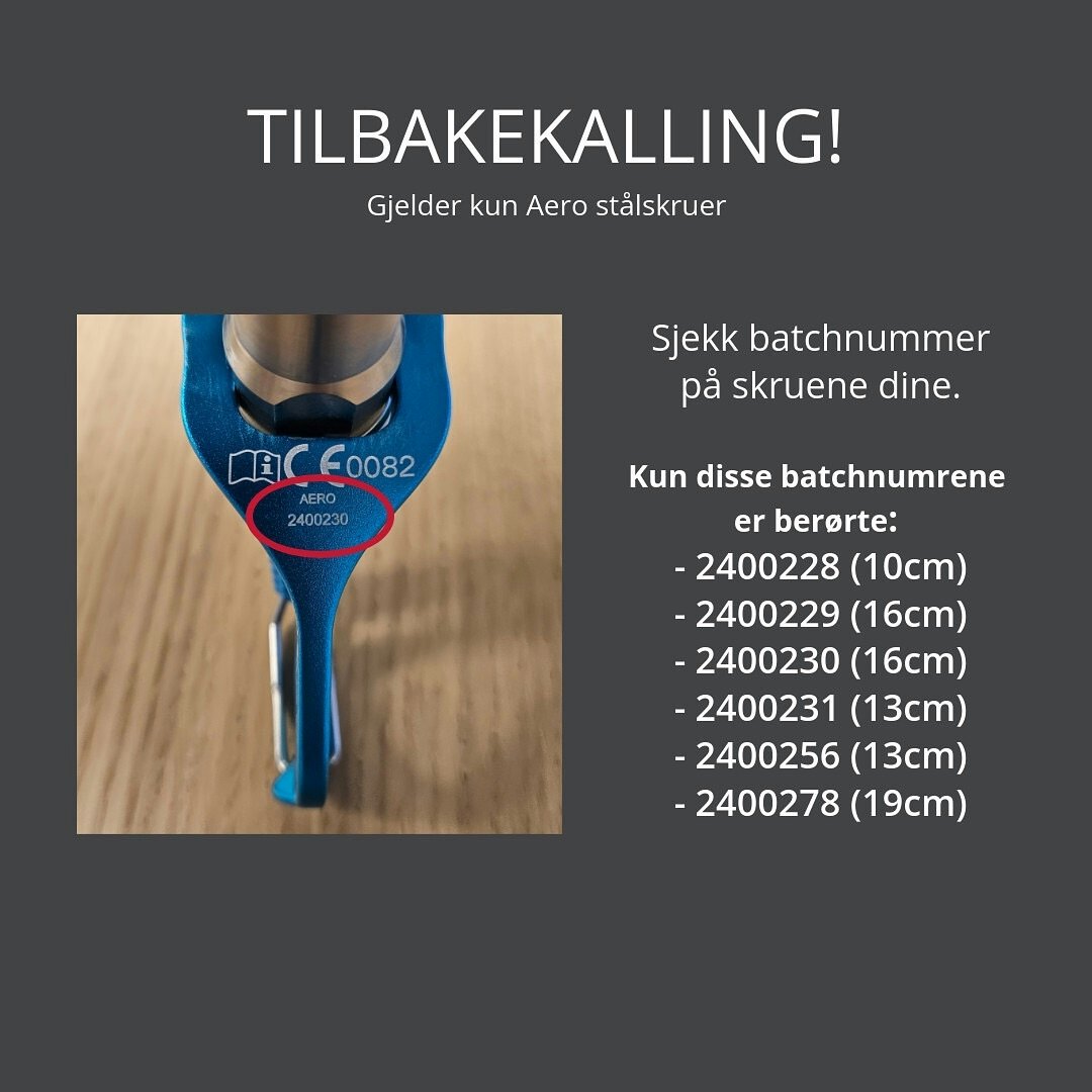– Det er altså ikke snakk om noe som kan være direkte farlig, men sånn indirekte kan det være kjipt nok å streve med å skru inn skruene. Derfor må alle som har kjøpt isskruer av typen Blure Ice Aero med disse batchnumrene levere skruene til oss, sier Trygve Sande i Blue Ice-importør Vertical Playground.