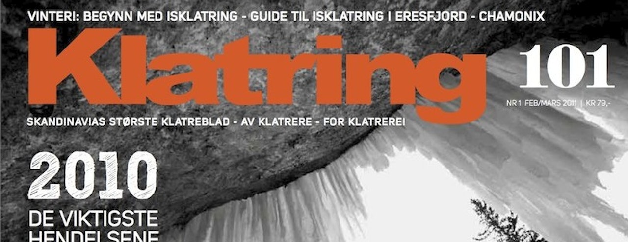 Klassikeren er Lipton på Rjukan, Sikre sider handler om de farlige skavlene og Testet er Petzl damehjelm, Moon Aerial Pack og Keyland isklatresko