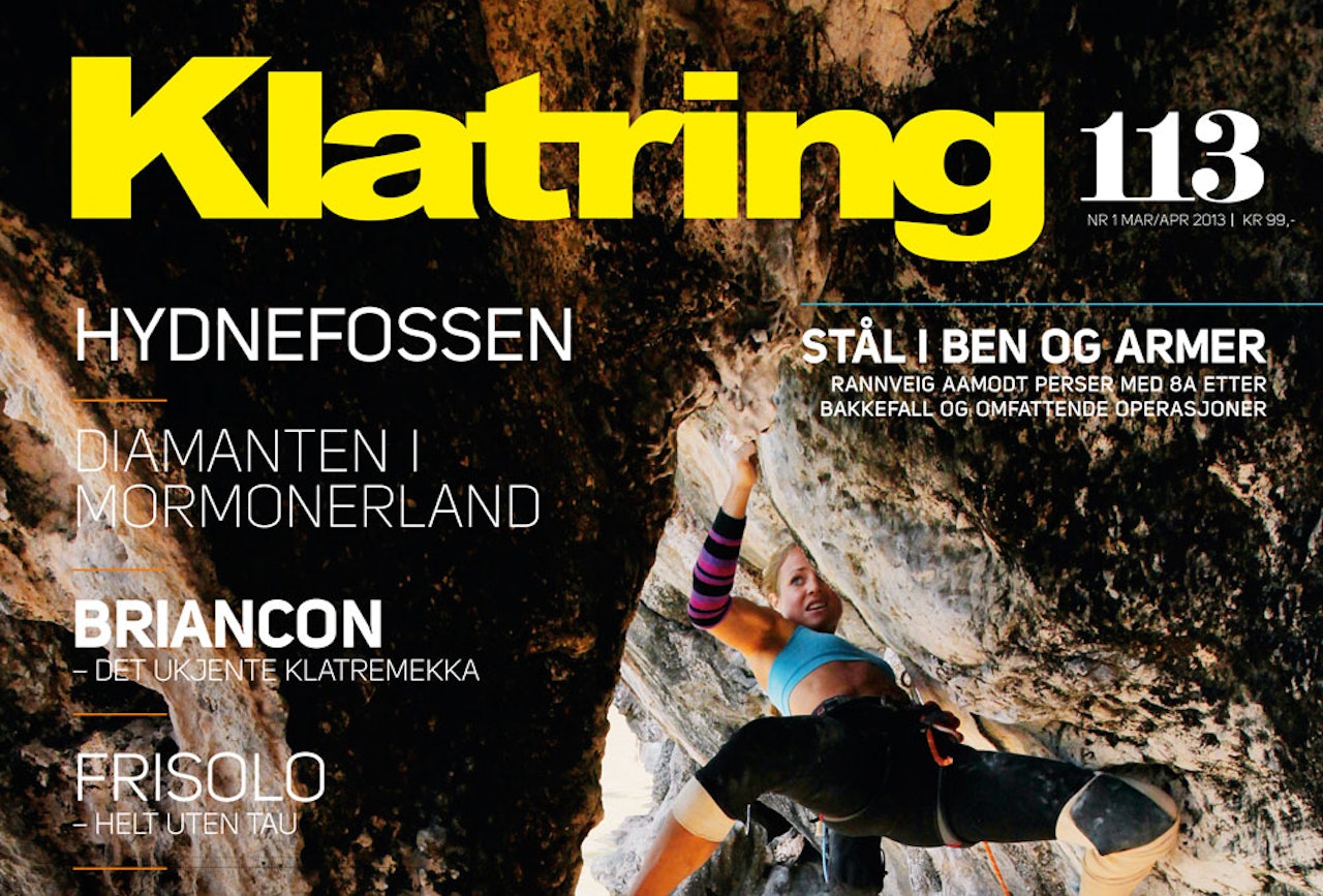 Nyheter, sikre sider, utstyr, tester, Magnus Midtbøs spalte og Klatreforbundets infoside.