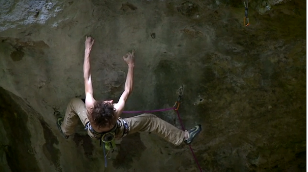 Klippet under viser Ondra på den spektakulære 9a-ruta Der Heilige Gral i Frankenjura, som han riktignok påpeker er soft 9a, men likevel utrolig nok gjør unna i andre forsøket. Dette er første repetisjon av ruta, som ble gått av tyske Marcus Bock i 2005.