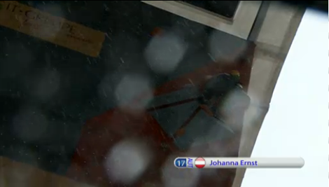 Ruskevær. Dagens finaler ble preget av ruskevær og utsettelser. Her er det Johanna Ernst som nesten forsvinner i regnet i semifinalen.