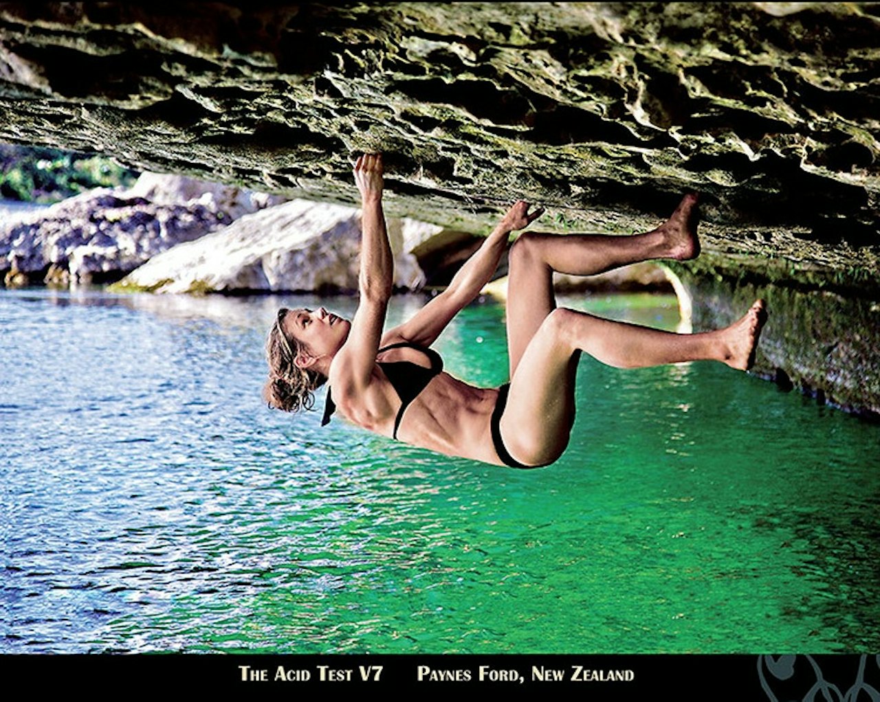 Også ektemannen, fotografen Nathan Welton har en fyldig blogg, og han kan melde at Rannveig for tredje år på rad er kalenderpike i Sharp End Publishings Women of Climbing-kalender. For 2013 pryder Rannveig desemberoppslaget i denne populære kalenderen, på vei gjennom flyttene på et bratt buldreproblem over vannet i New Zeeland (naturligvis fra før ulykken i Tyrkia). Fotografen er Nathan selv, og som han sier det i sin bloggpost: If the photo makes you feel out of shape, don’t worry – you’re not the only one!