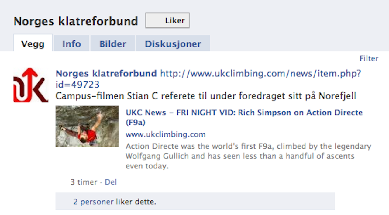 Norges klatreforbund med facebookprofil.
