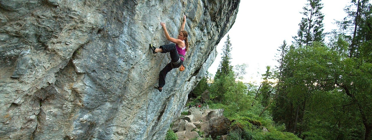 Perser: Eva Helgø på Hodet over vannet (8b). Vegar Torp sikrer. Foto: Steinar Kragset